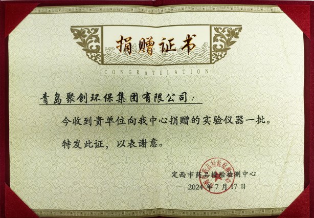 近日,聚創(chuàng)集團(tuán)參與青島市幫扶定西市食藥產(chǎn)業(yè)檢驗(yàn)檢測(cè)能力提升暨青島?定西大型檢驗(yàn)檢測(cè)儀器設(shè)備捐贈(zèng)活動(dòng),并收到定西市藥品檢驗(yàn)檢測(cè)中心表達(dá)感謝的捐贈(zèng)證書。